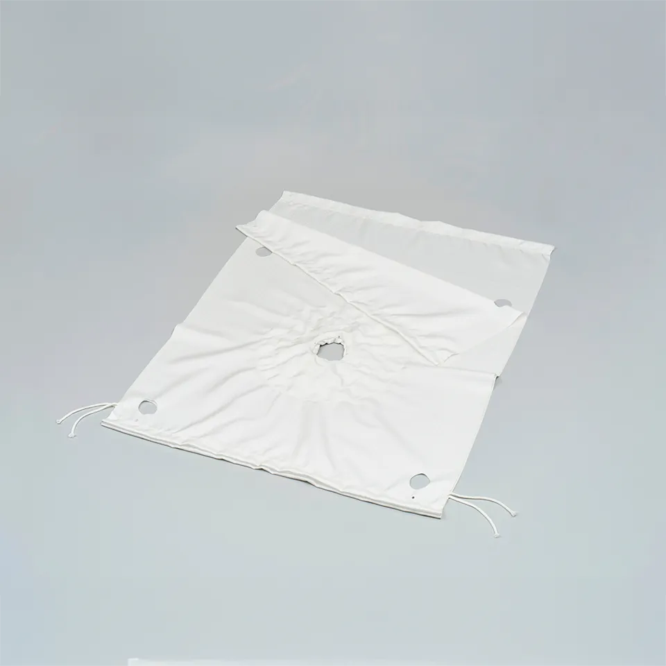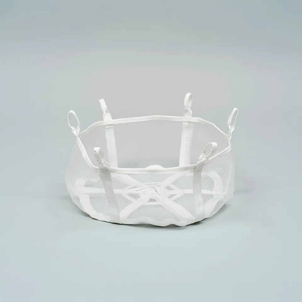 杜氏様との協議で、搾り袋に紐を付けて最初からしばりつける仕様を開発。 強度やサイズを調整し製品化した結果、経験の浅い蔵人でもミスなく素早く作業できるようになり、大変好評をいただけた。