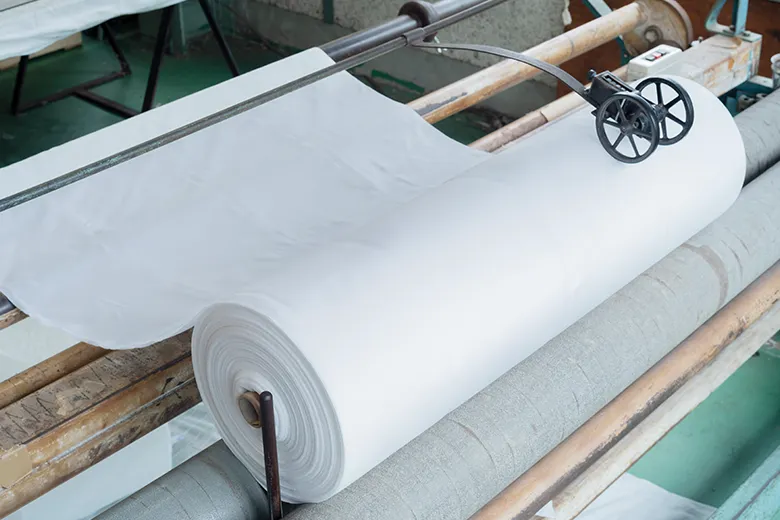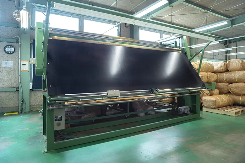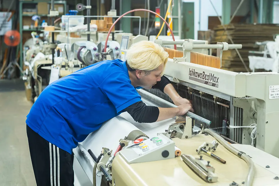 自社工場により原料糸の購入以降の『撚糸』『整経』『製織』『裁断』『縫製』を行います。 用途によって樹脂塗布や付属品の取り付け加工等を行います。