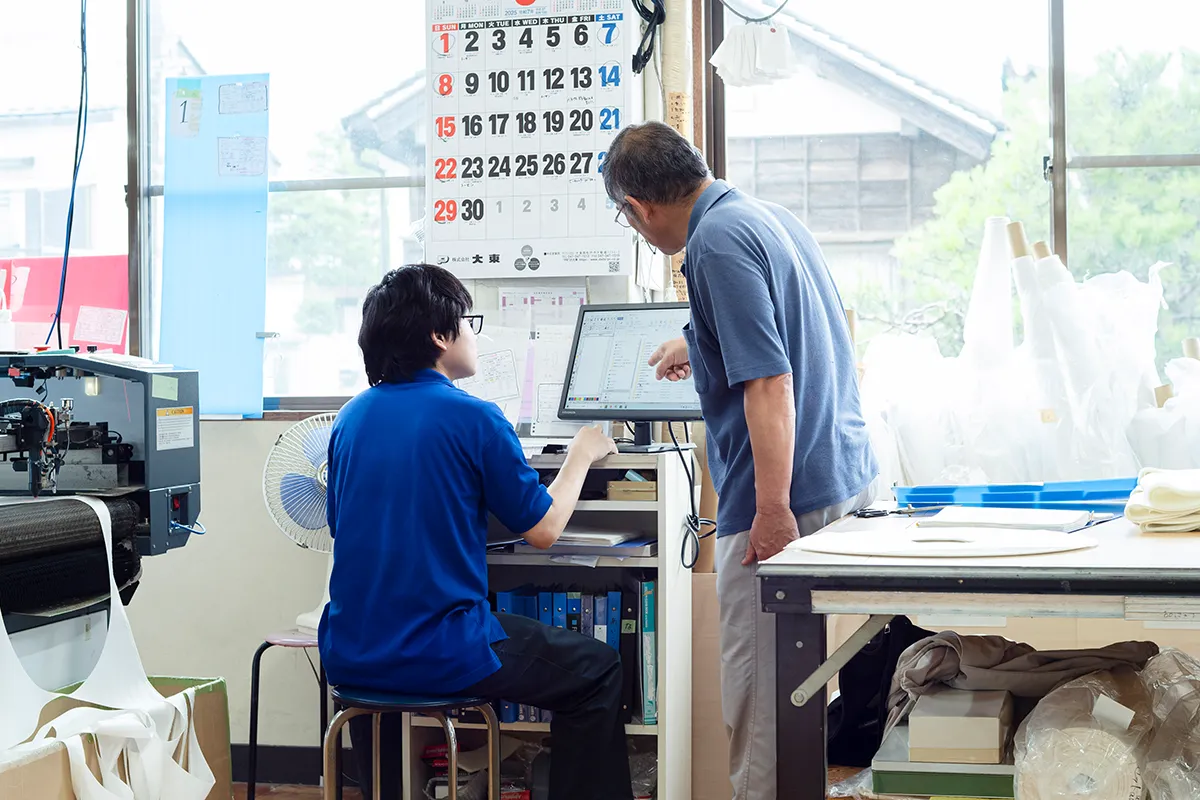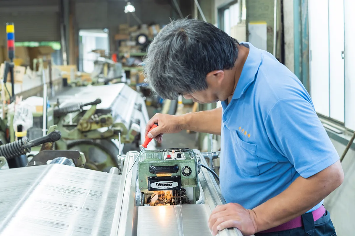 撚糸から縫製まで、すべての製造工程を自社で一貫対応できる設備体制を整えています。
