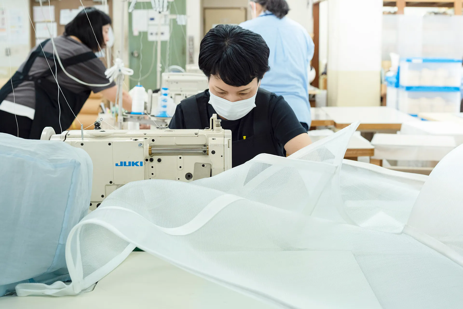 現場で利用されていた製品を用いて検証し、比較的縮みにくい生地や材質を選定。 さらに、少し大きめに作ることで、安定した袋サイズとなり現場の作業性が向上した。